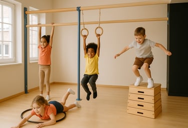 Clases de movimiento donde el juego guía el desarrollo natural de los niños. Saltan, reptan, trepan y se expresan en libertad, como su cuerpo necesita para crecer fuerte, coordinado y ágil.
